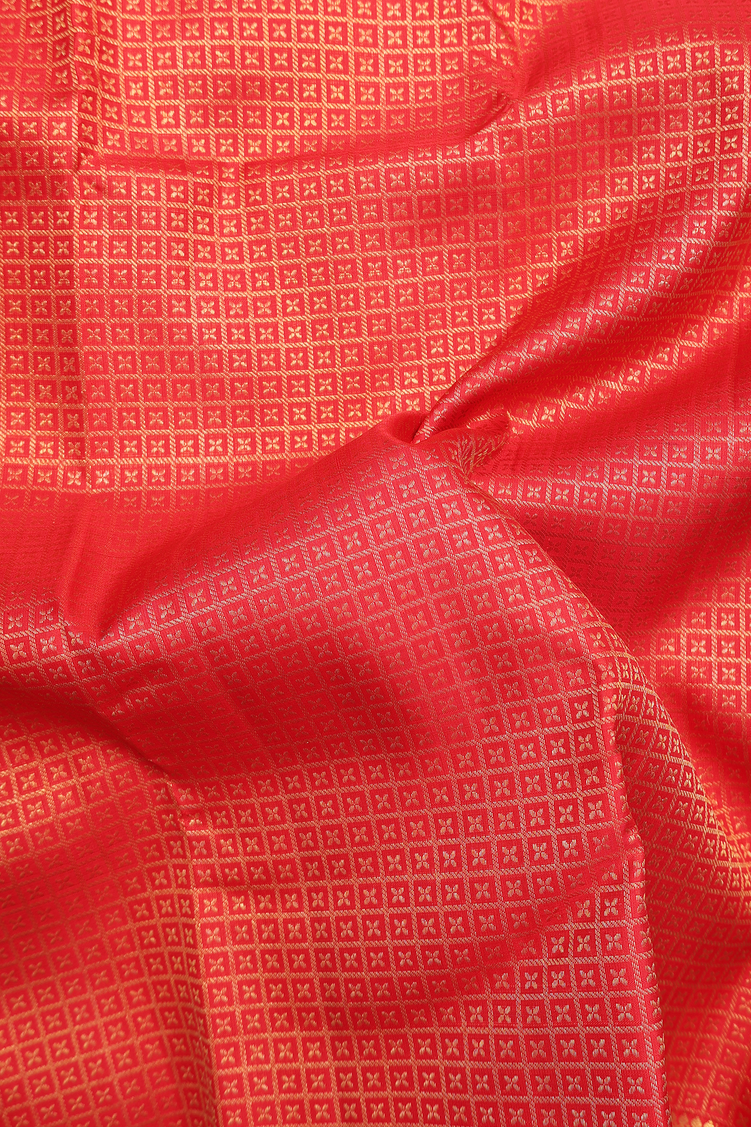 Kanchipuram Silk Saree In Chilli Red With Brocade Pattern