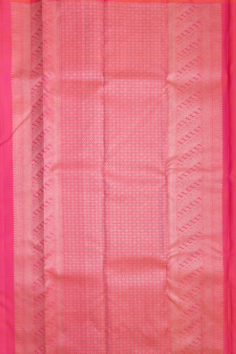 Kanchipuram Silk Saree In Coral Pink With Paisley Motifs