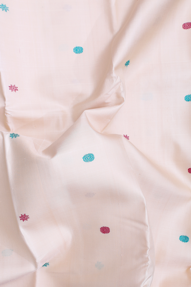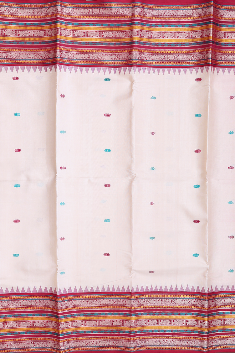 Kanchipuram Silk Saree In Ivory With Threadwork Buttas