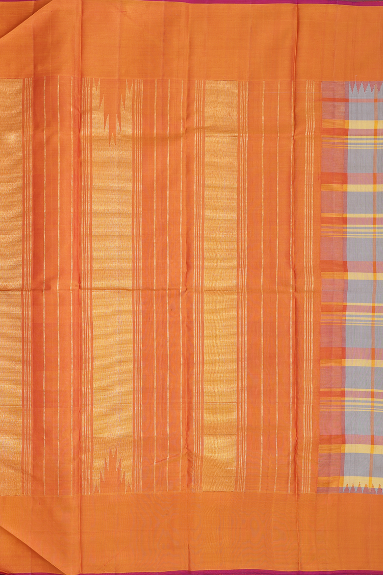 This exquisite kanchipuram silk saree showcases a vibrant multicolor palette intricately woven with a classic checks pattern. Crafted with rich silk, it offers an elegant drape and a subtle sheen, perfect for formal occasions and festive celebrations. The timeless design blends tradition with contemporary style, elevating your wardrobe with a sophisticated charm.