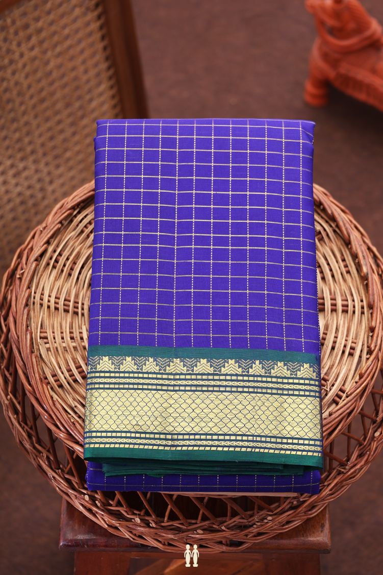 Kanchipuram Silk Saree In Royal Blue With Checks Design