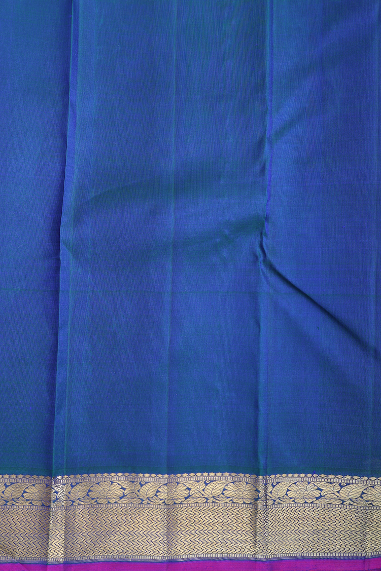 This exquisite kanchipuram silk saree in rich royal blue features delicate floral buttis with zari border completed by purple selvedge, woven throughout, offering a timeless elegance. Crafted from premium silk, it drapes gracefully, making it perfect for festive occasions and celebrations. The intricate motifs add a subtle yet sophisticated charm, reflecting traditional craftsmanship with a contemporary appeal. Ideal for those seeking both luxury and cultural heritage in their attire.