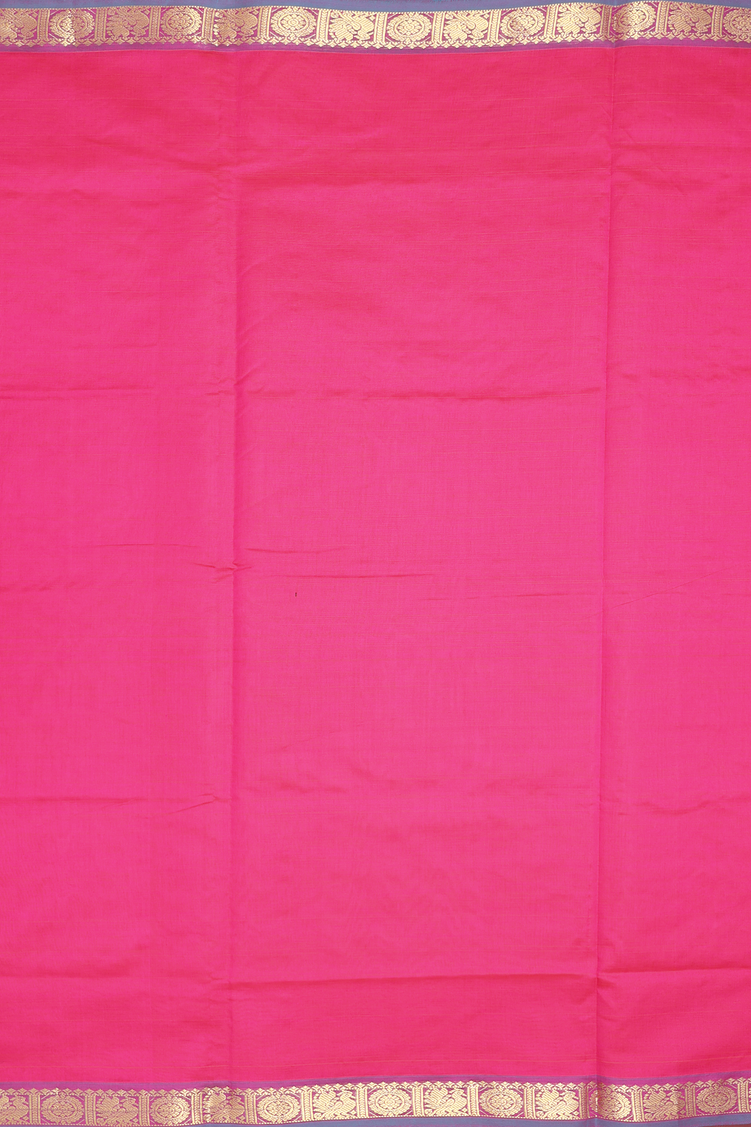 Semi Silk Cotton Saree In Rani Pink With Contrast Border