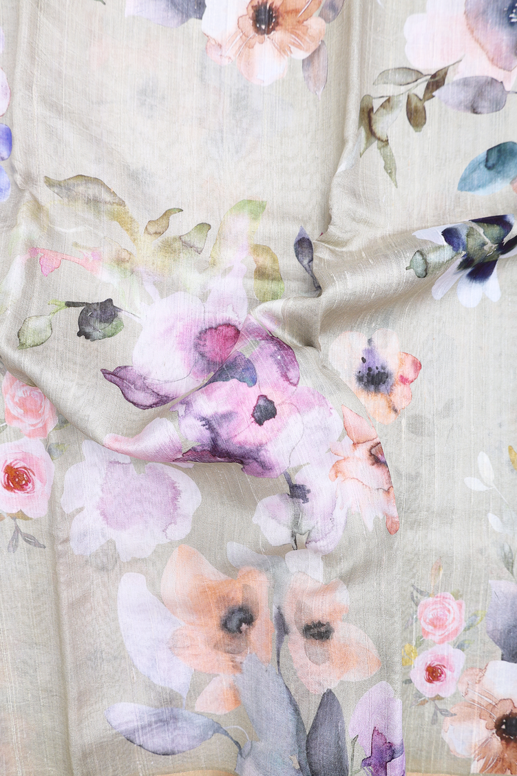 Drape yourself in timeless elegance with this exquisite Tussar silk saree in soft pale green. The natural lustre of tussar fabric creates a subtle shimmer that catches light beautifully, while delicate floral motifs add refined charm to the weave. Perfect for festive occasions, celebrations, or when you desire understated sophistication.Â