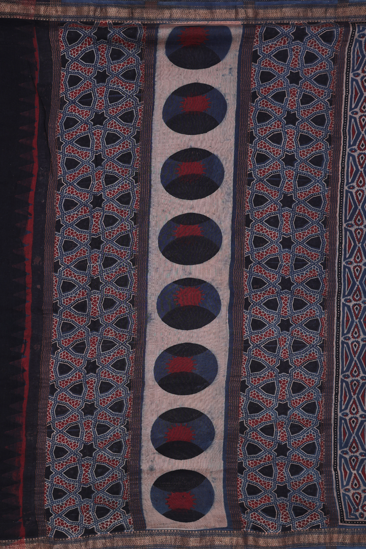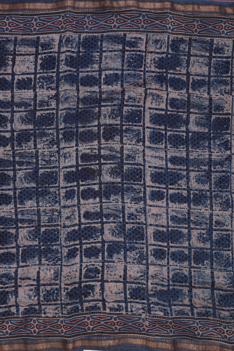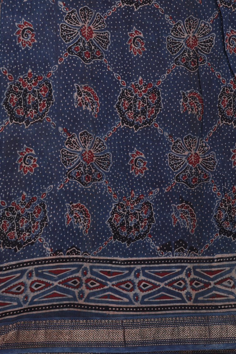 Ajrakh Cotton Saree In Capri Blue With Printed Design