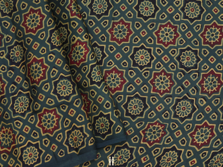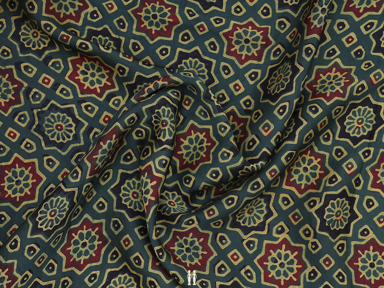 Ajrakh Printed Design Green Modal Silk Blouse Material