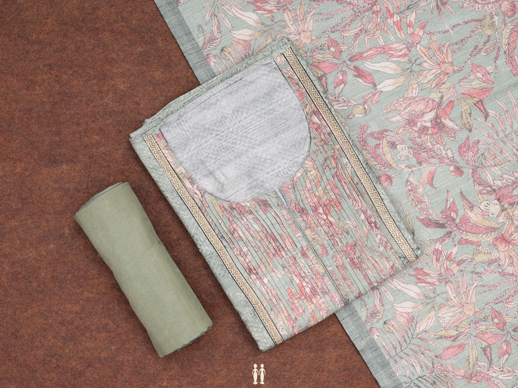 Allover Design Green Silk Cotton Unstitched Salwar Material