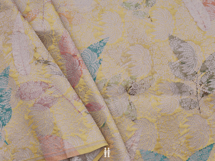 Allover Design Yellow Banarasi Silk Blouse Material