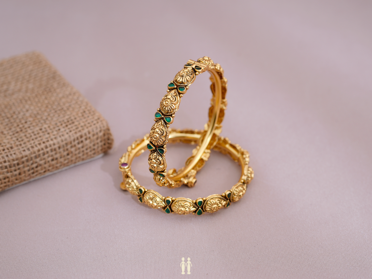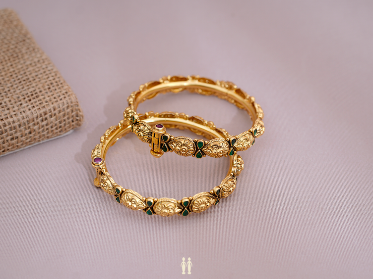 Antique Design Gold Plated Silver Screw Bangles