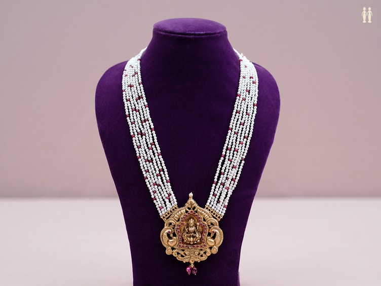 Antique Design With Multi Layered Pearls Silver Long Necklace
