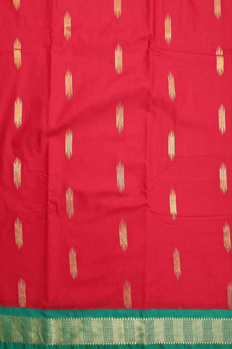 Apoorva Cotton Saree In Scarlet Red With Zari Buttas