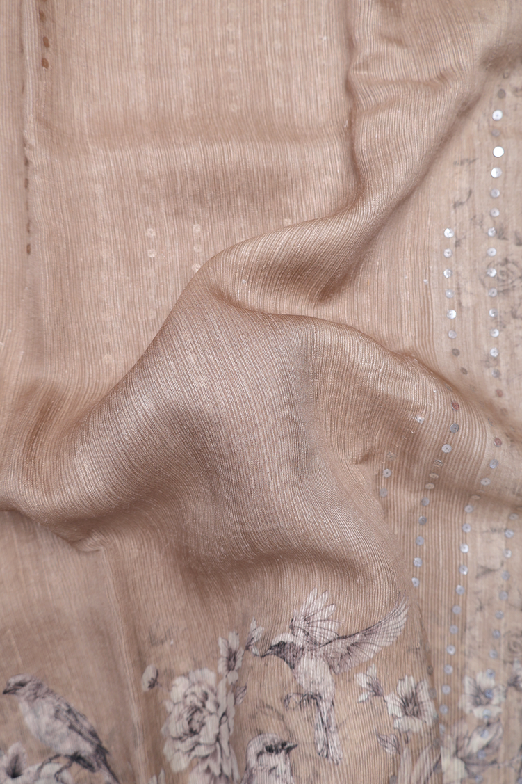 Elevate your elegance with the bailu silk saree in rich brown, exquisitely enhanced by delicate chamki work. This saree blends luxurious silk texture with subtle shimmering details, creating a refined silhouette perfect for formal occasions. Its sophisticated design ensures you stand out with understated grace and timeless charm.