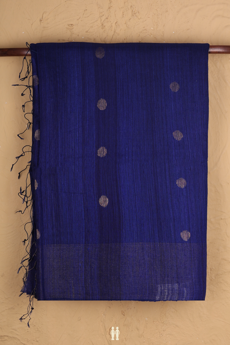 Bailu Silk Saree In Dark Royal Blue With Zari Buttas
