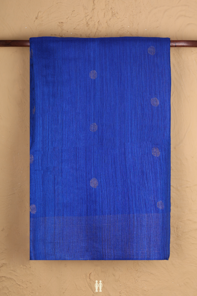 Bailu Silk Saree In Indigo Blue With Zari Buttas