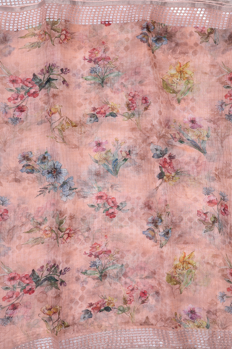 Bailu Silk Saree In Salmon Pink With Floral Printed Design
