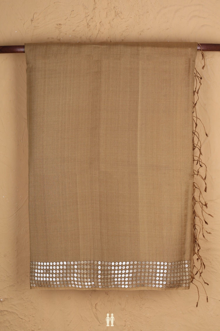 Bailu Silk Saree In Plain Brown With Chamki Border