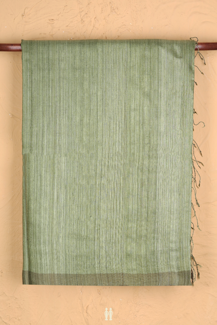 Bailu Silk Saree In Plain Green With Chamki Work Pallu
