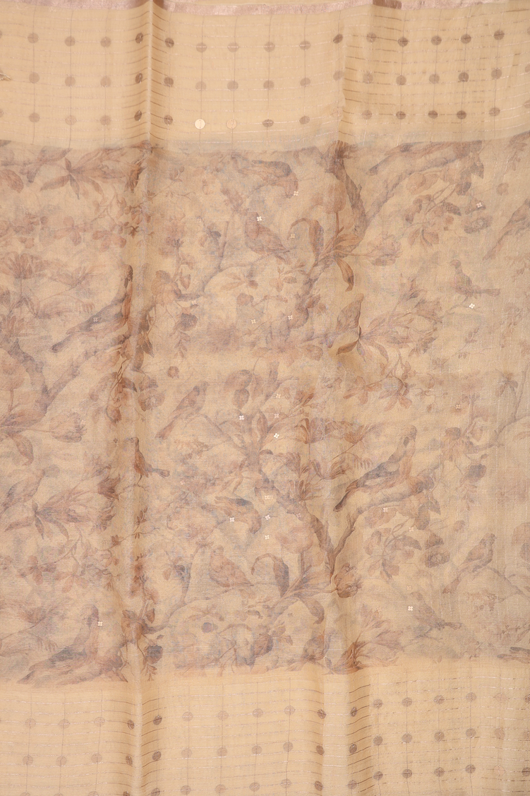 Bailu Silk Saree Yellowish Beige With Birds Printed Design
