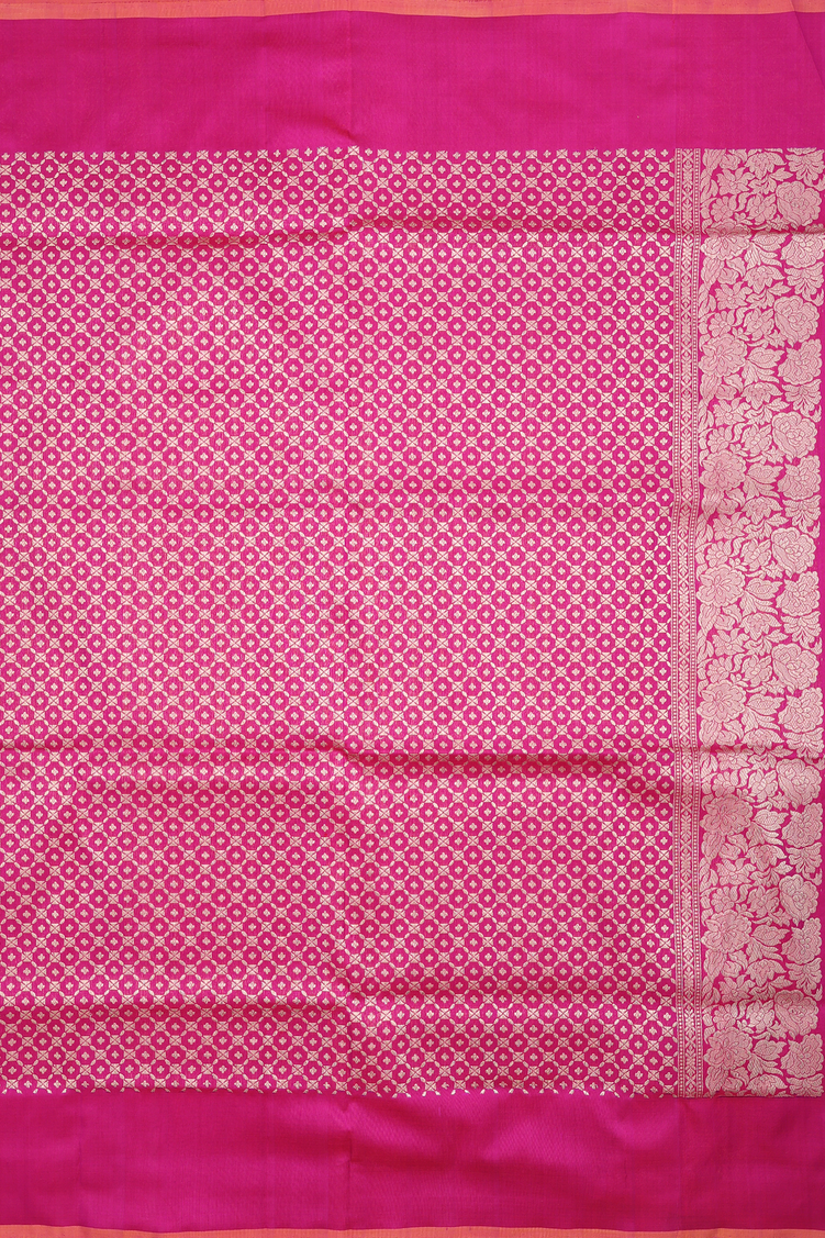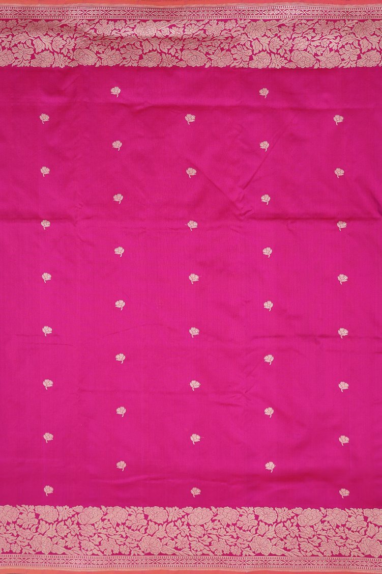 Banarasi Silk Saree In Deep Magenta With Floral Buttas