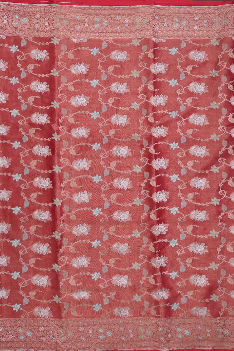 Banarasi Silk Saree In Dusty Red With Floral Design