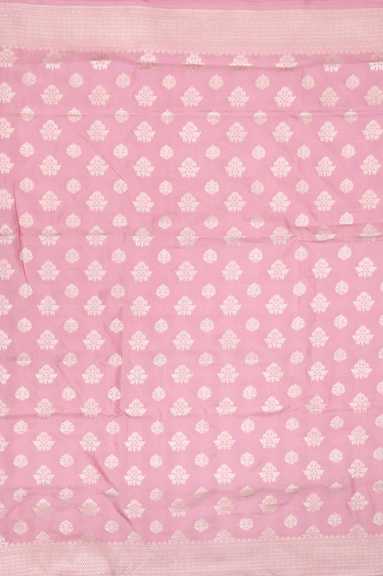 Banarasi Silk Saree In Dusty Rose With Floral Buttas