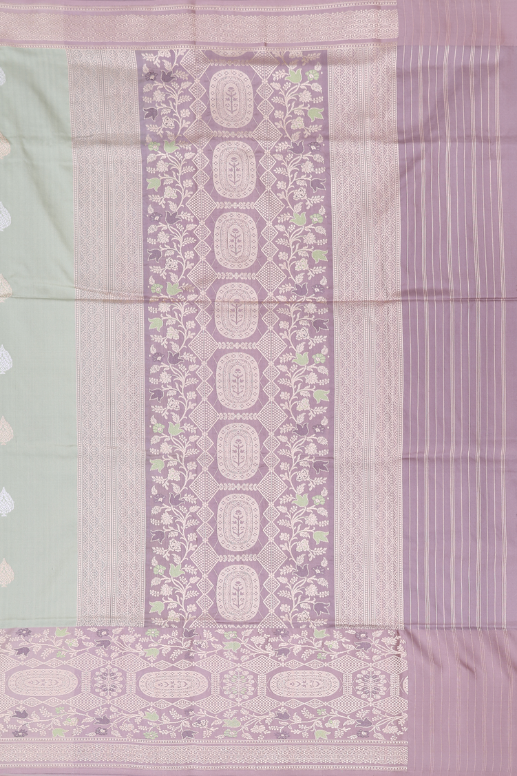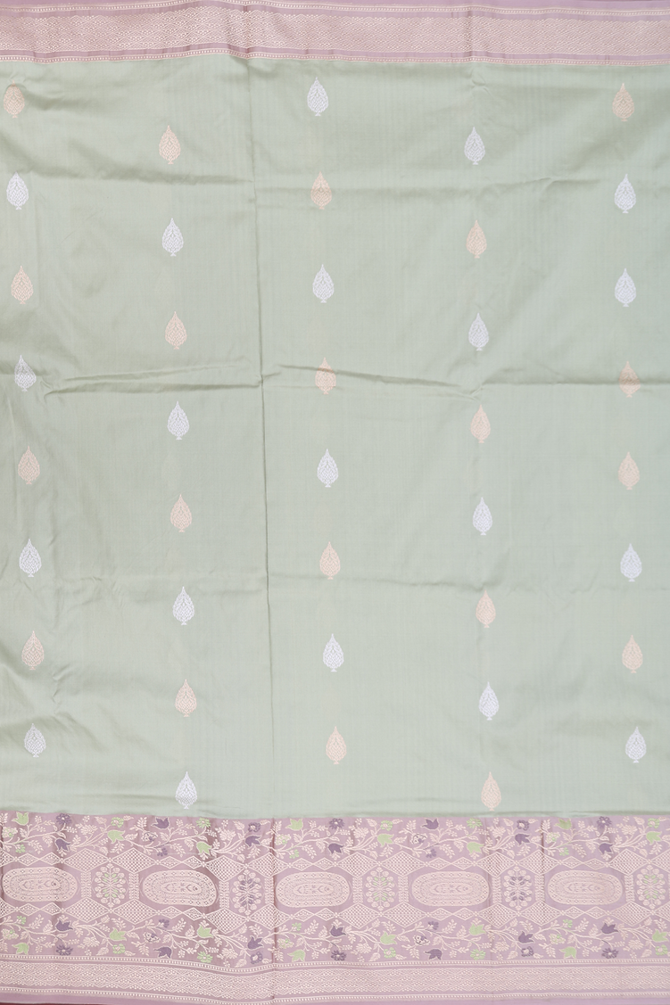 Banarasi Silk Saree In Pastel Green With Zari Buttas