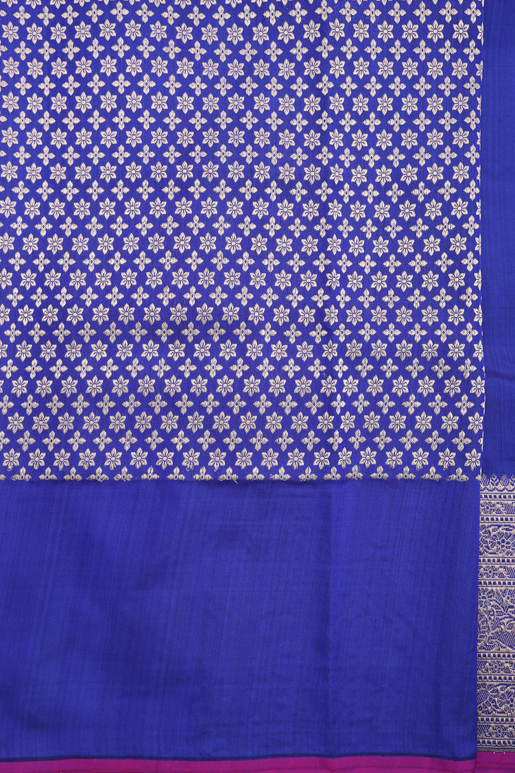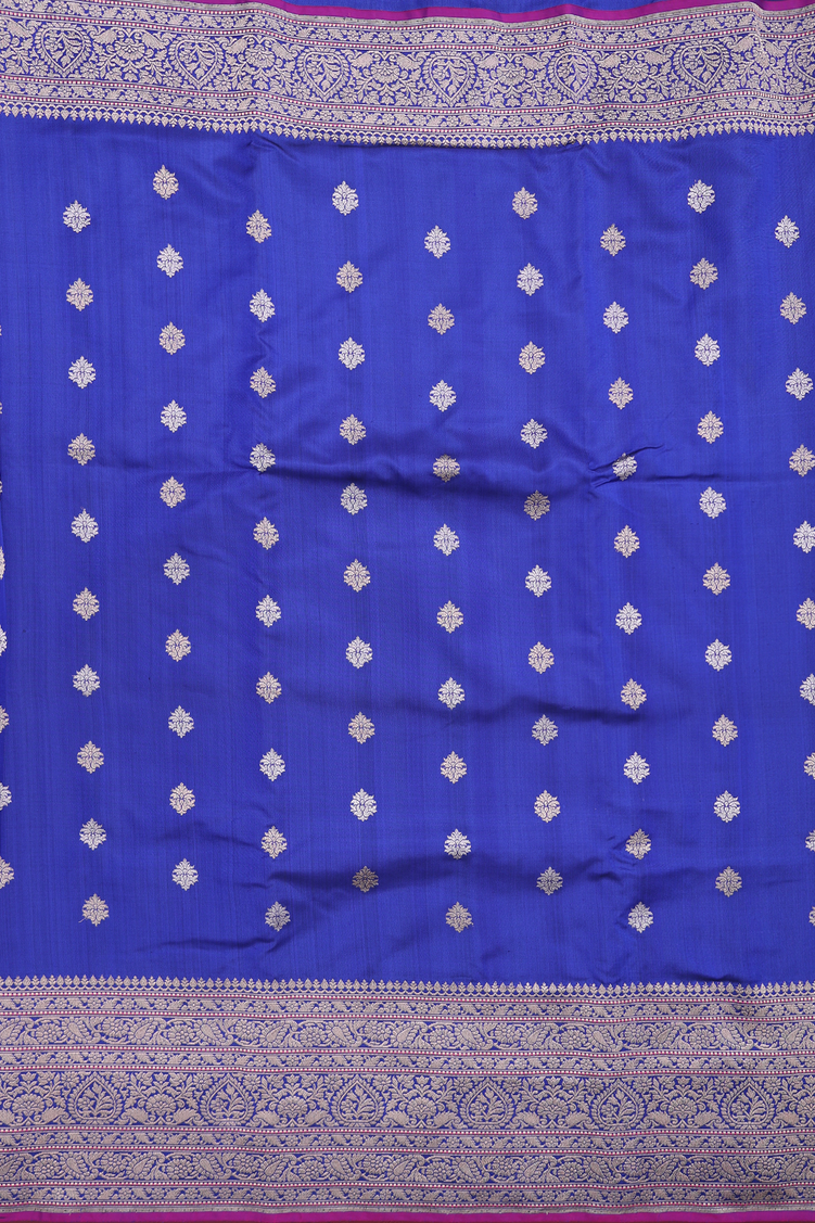 Banarasi Silk Saree In Royal Blue With Zari Buttas