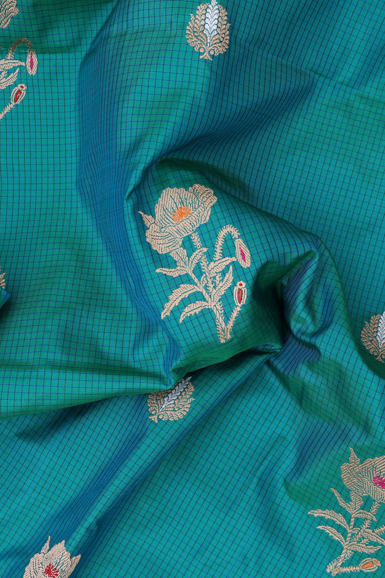 Banarasi Silk Saree In Teal Blue With Checks Design