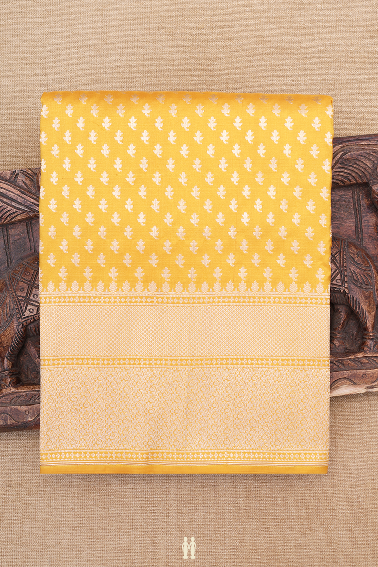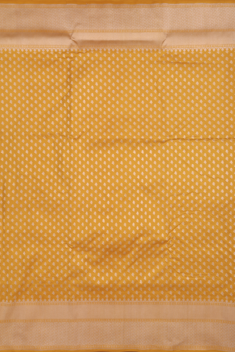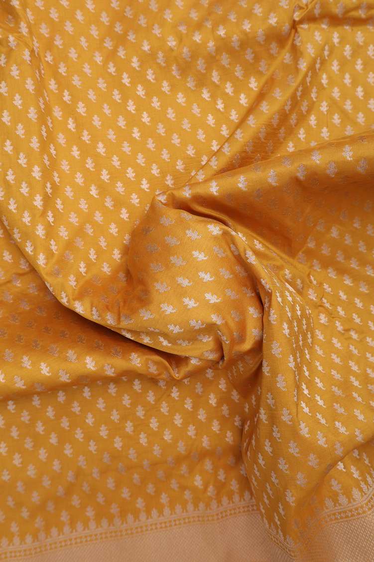 Banarasi Silk Saree In Saffron Yellow With Floral Buttis