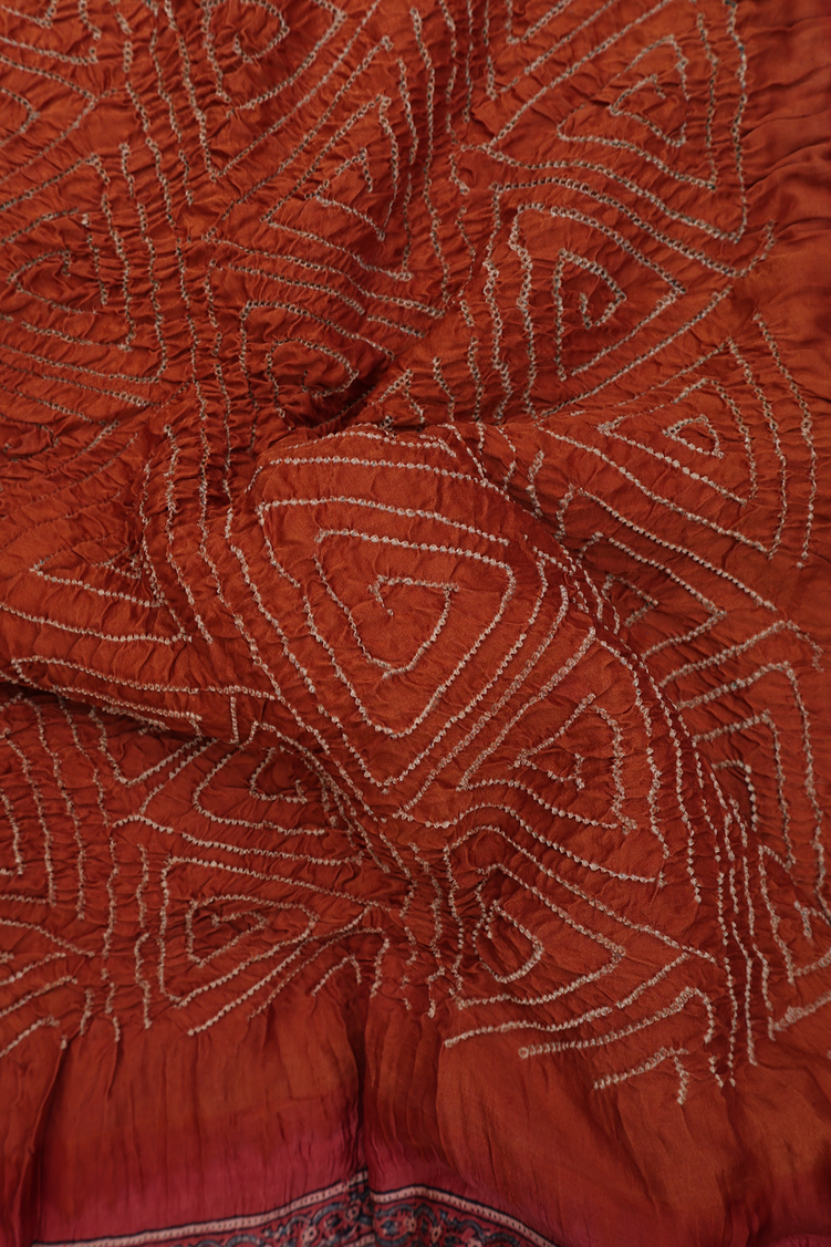 Embrace timeless elegance with this exquisite bandhani silk saree in rich brown tones. The intricate triangle design, created through traditional tie-and-dye techniques, adds a distinctive geometric pattern that celebrates authentic craftsmanship. Woven from pure silk, this saree drapes beautifully and offers a luxurious feel against the skin. Perfect for festive occasions, weddings, or cultural celebrations, it pairs effortlessly with traditional jewelry and accessories. The earthy brown shade complements all skin tones, making it a versatile addition to your ethnic wardrobe. Experience the artistry and heritage of handcrafted bandhani work in every fold.