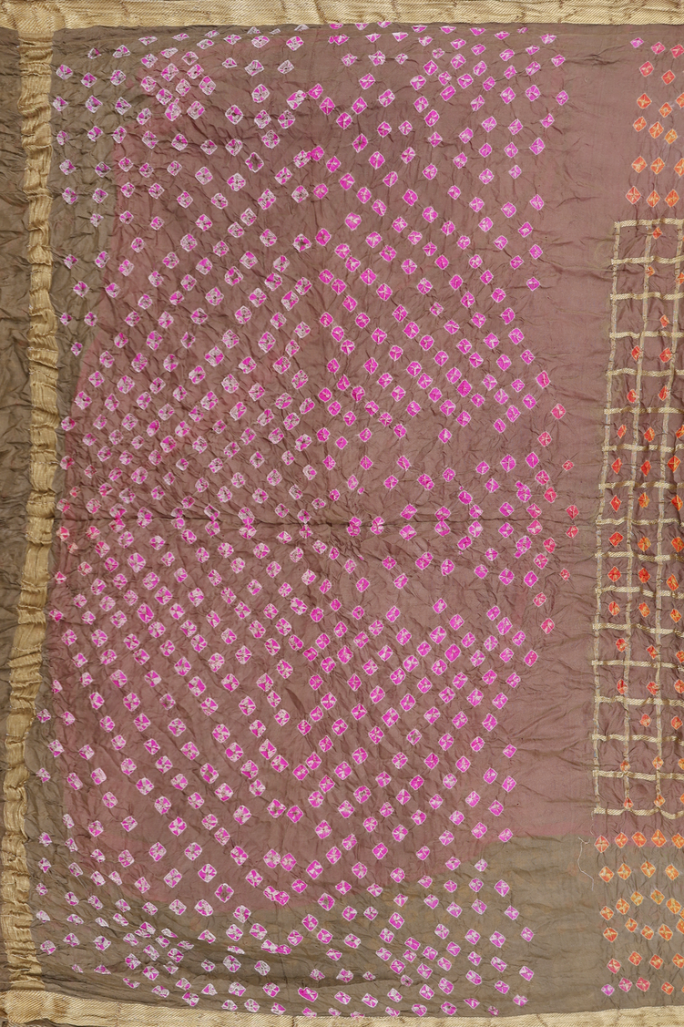 Bandhani Silk Saree In Dusty Brown With Tie And Dye Design