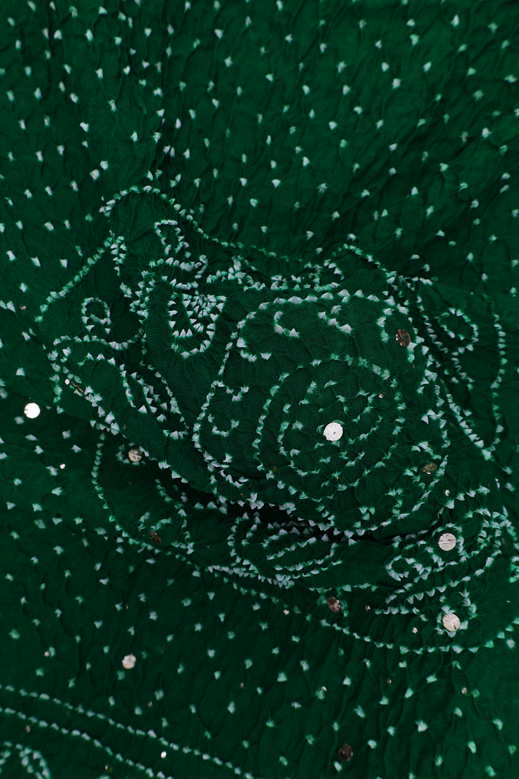 Bandhani Silk Saree In Forest Green With Tie And Dye Design