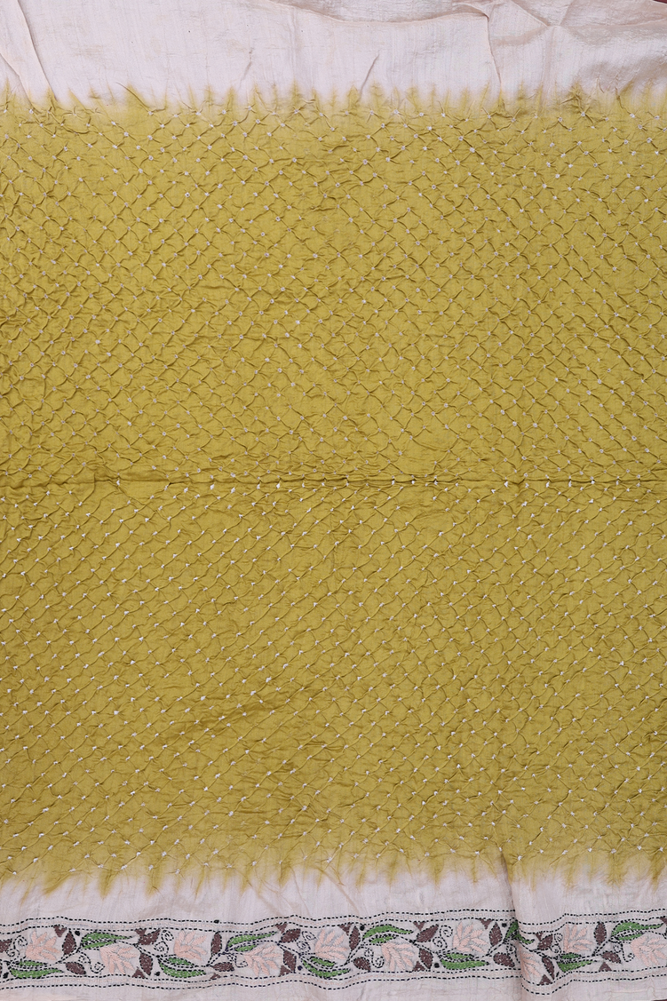 Bandhani Silk Saree In Olive Yellow With Tie And Dye Design