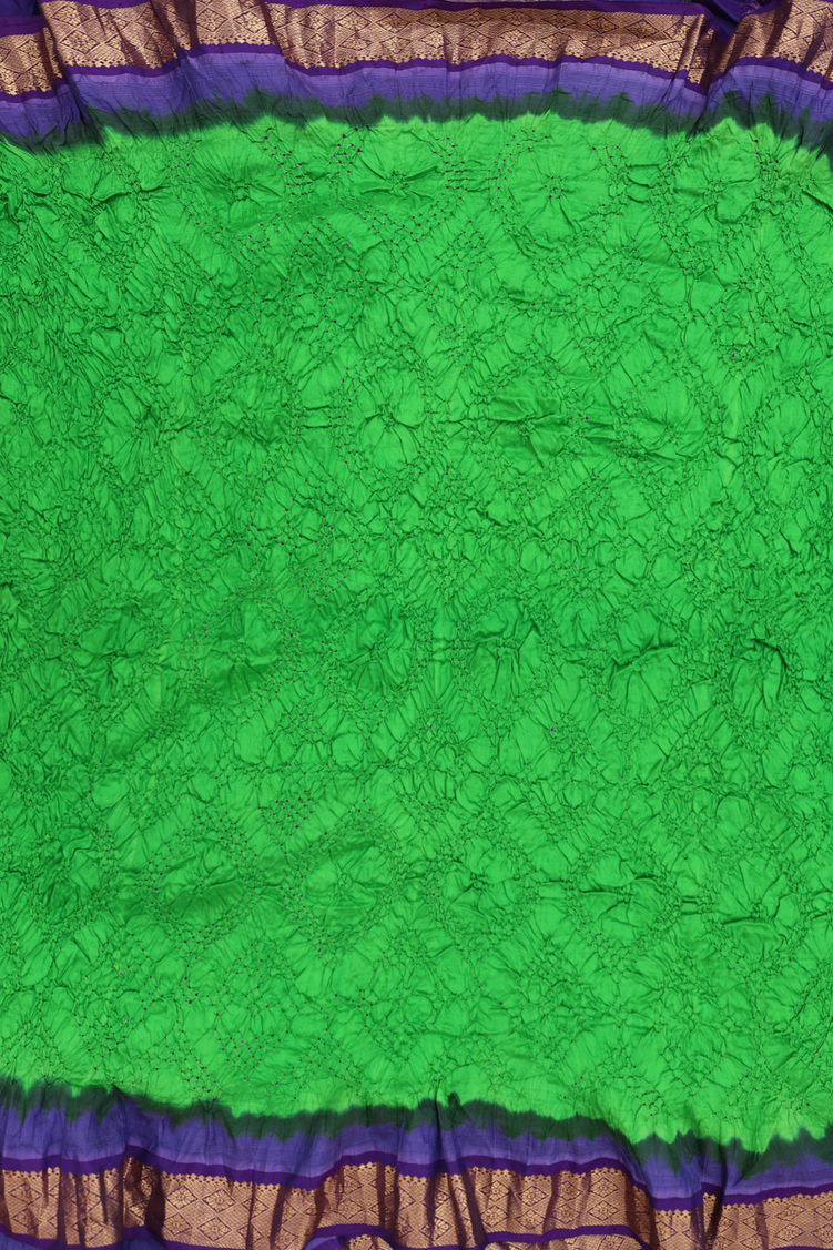Bandhani Silk Saree In Parrot Green With Tie And Dye Design