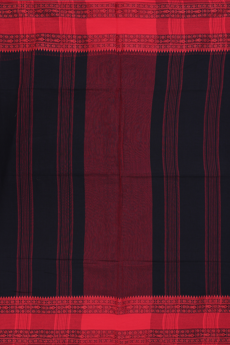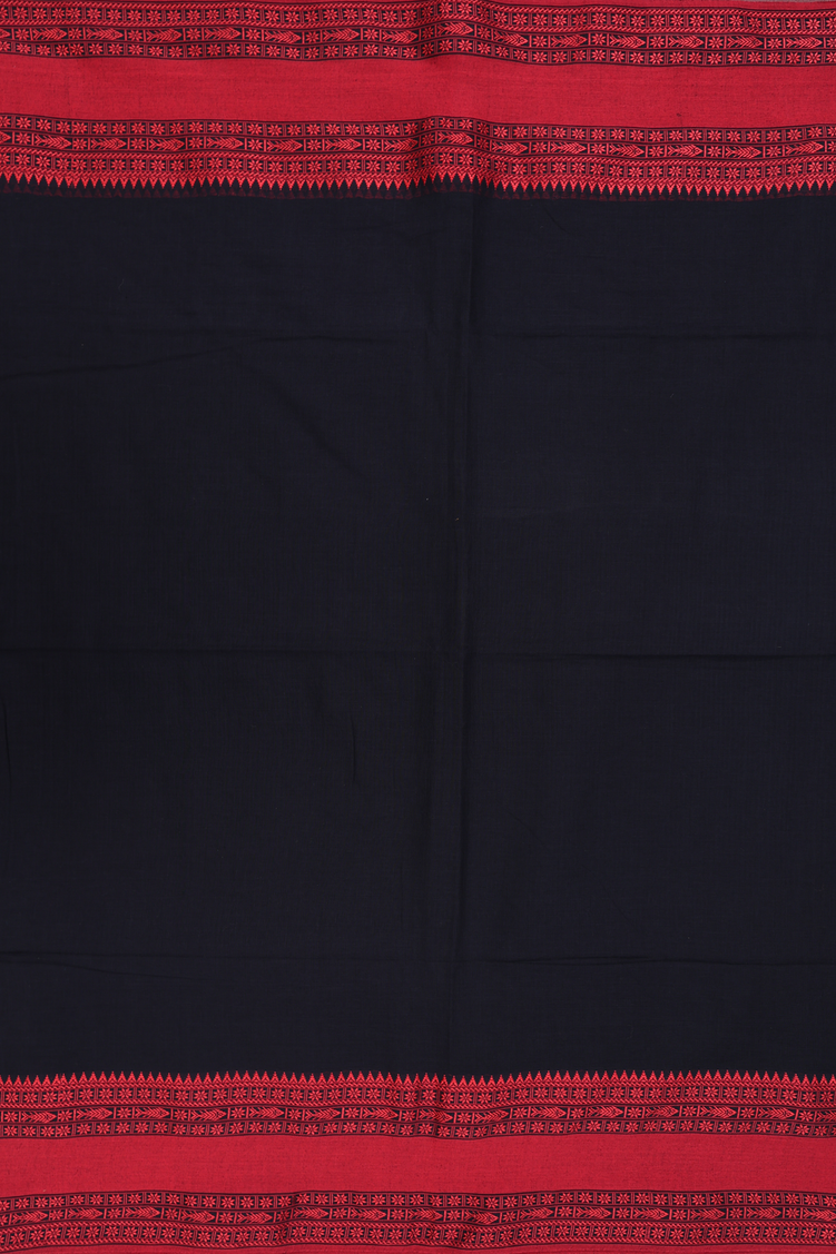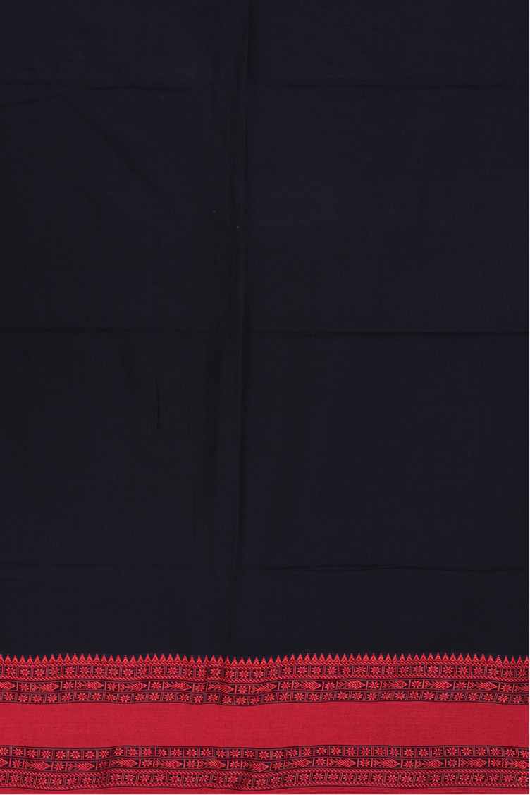 Bengal Cotton Saree In Black With Threadwork Border