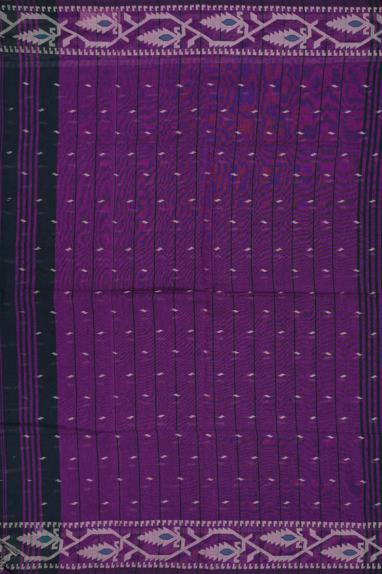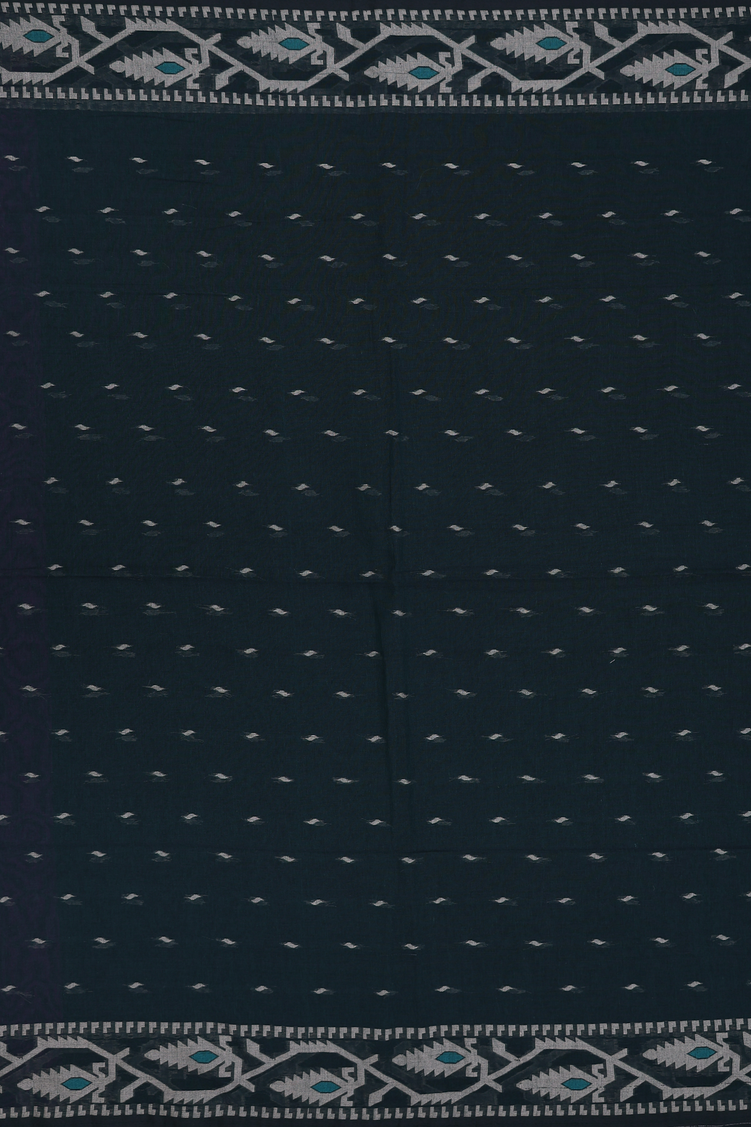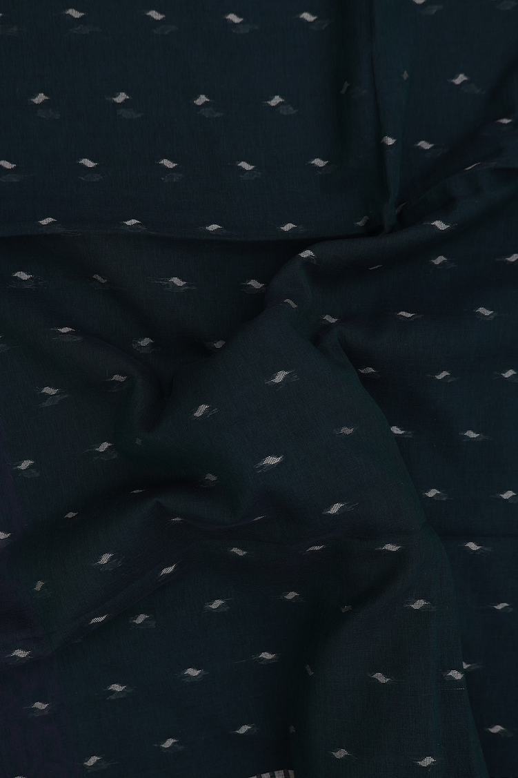 Bengal Cotton Saree In Bottle Green With Threadwork Buttas