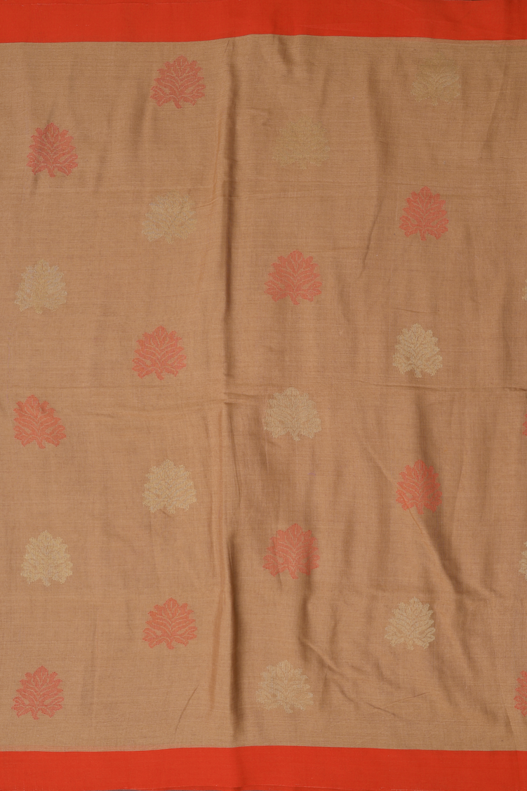 Bengal Cotton Saree In Brown With Leaf Motifs