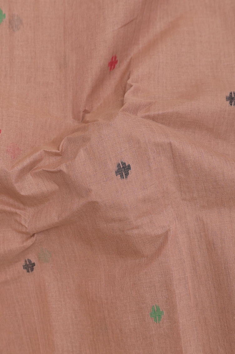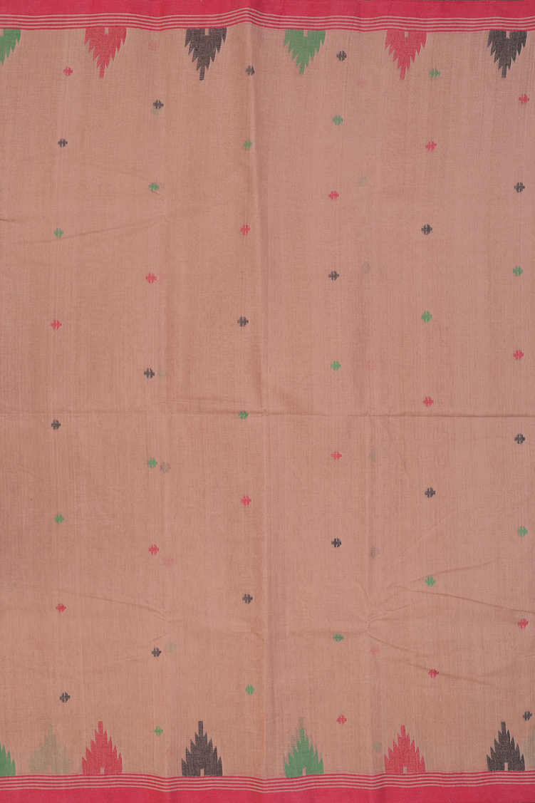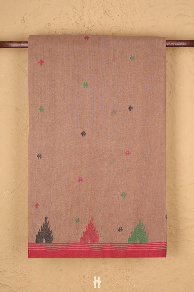 Bengal Cotton Saree In Brown With Threadwork Buttas