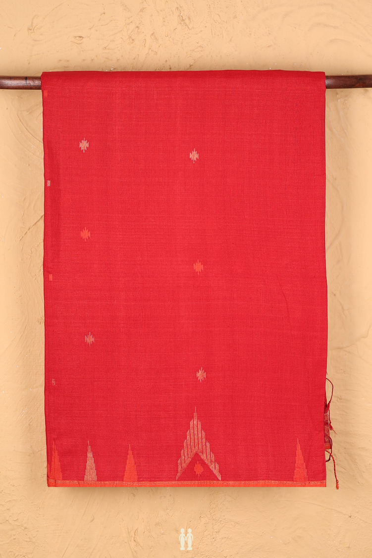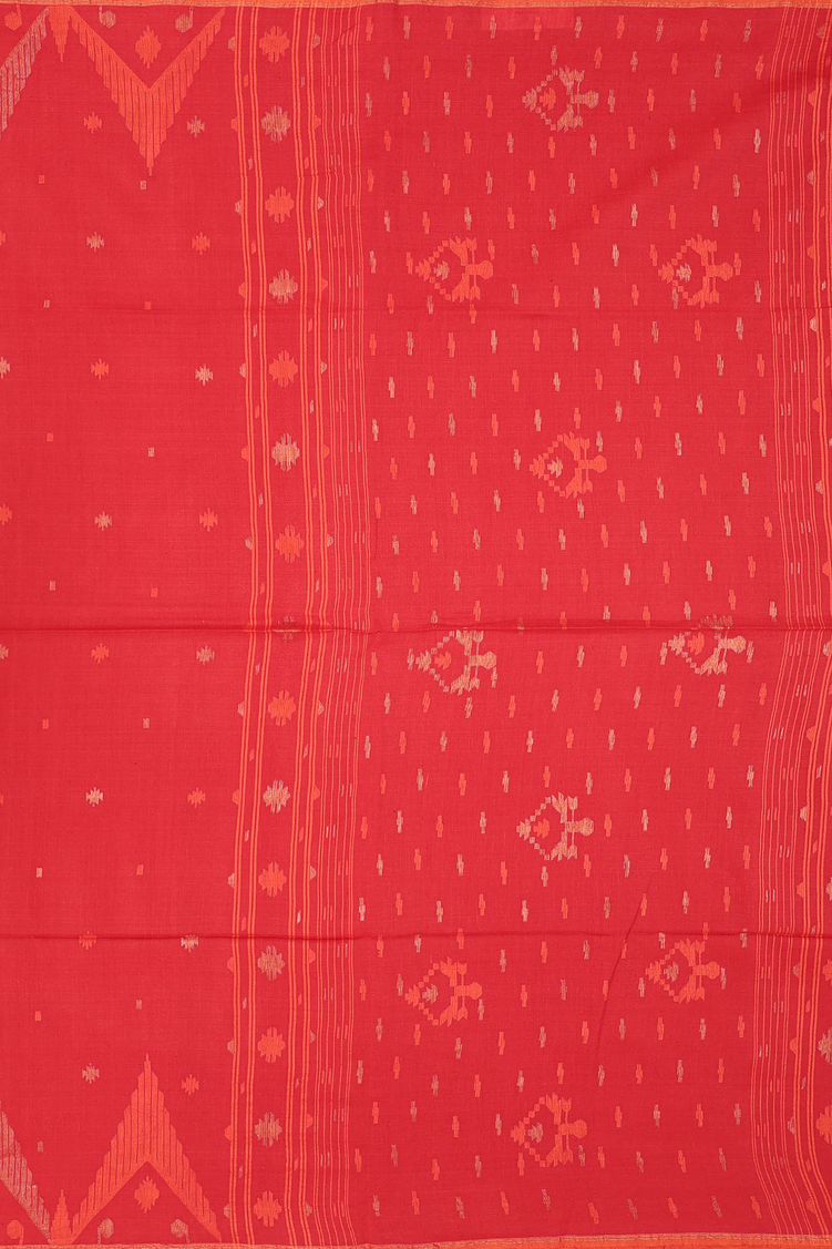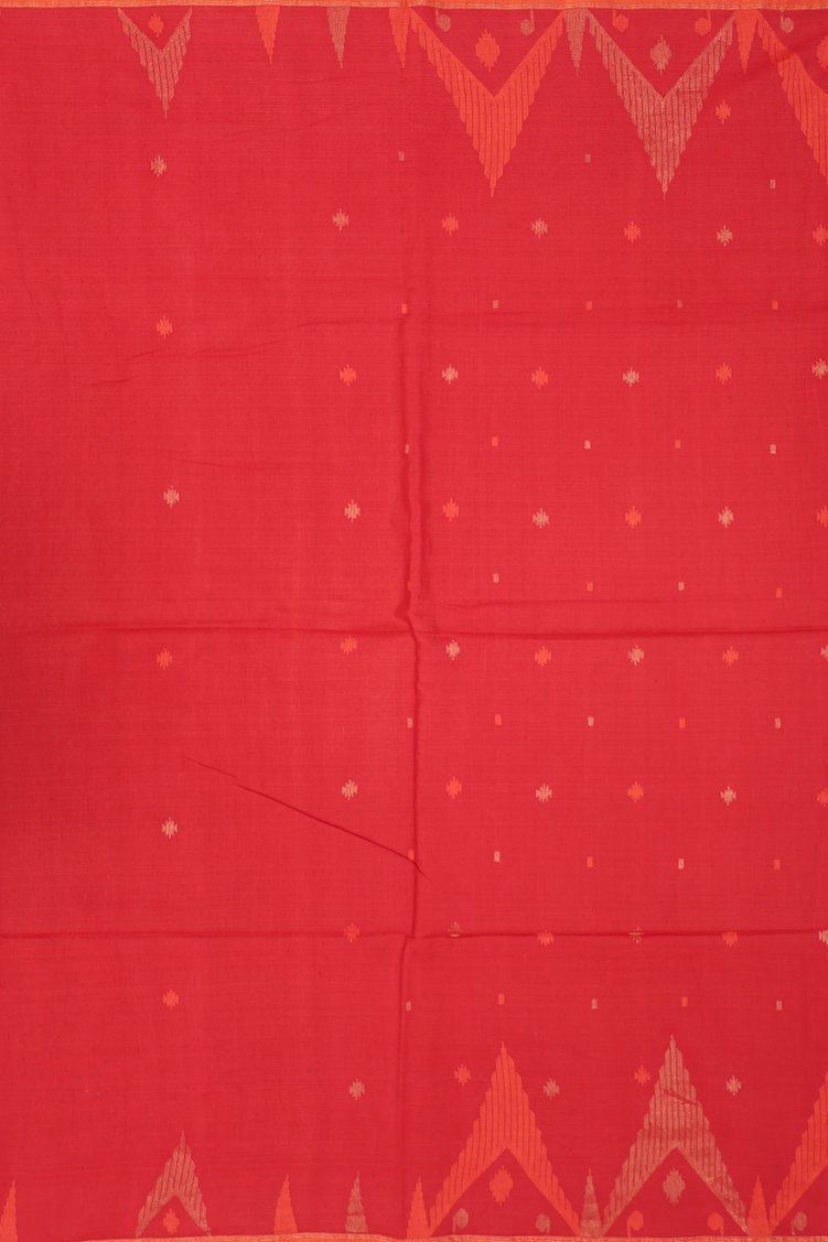Bengal Cotton Saree In Chilli Red With Threadwork Buttas