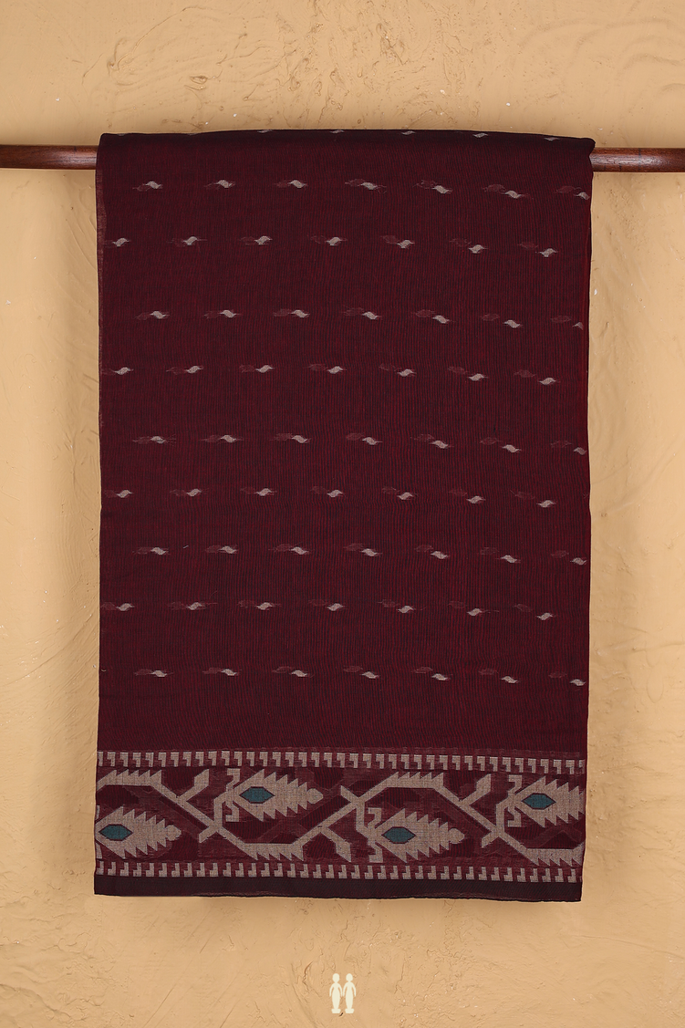 Bengal Cotton Saree In Coffee Brown With Threadwork Buttas