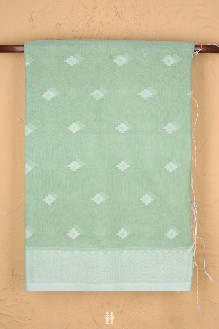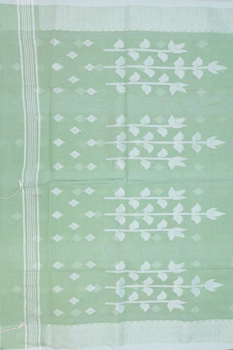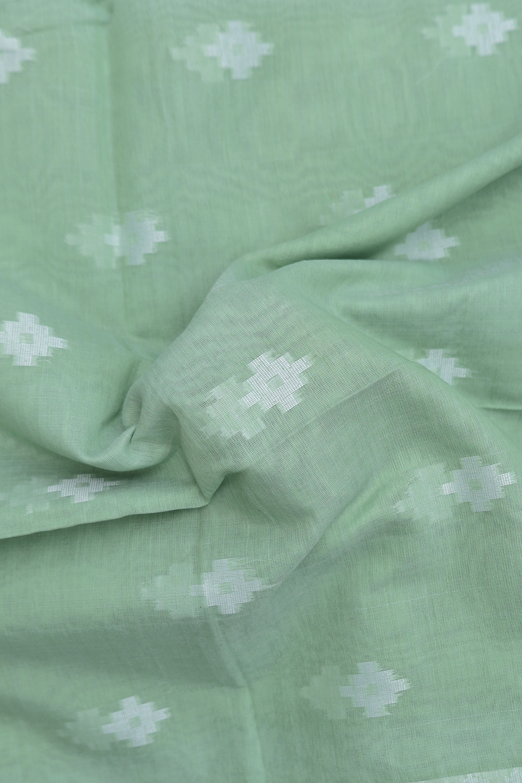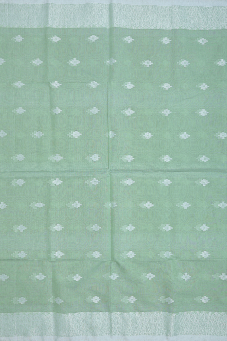 Bengal Cotton Saree In Dusty Green With Threadwork Buttas