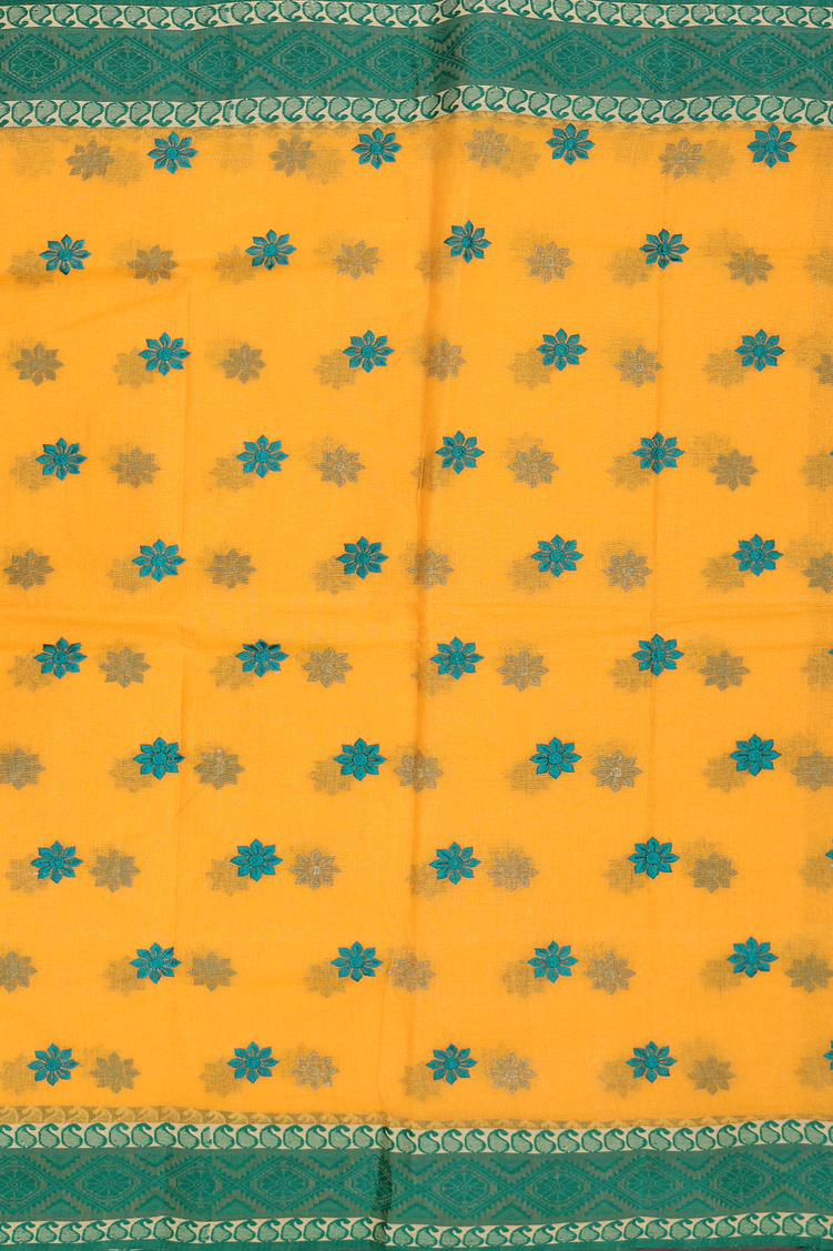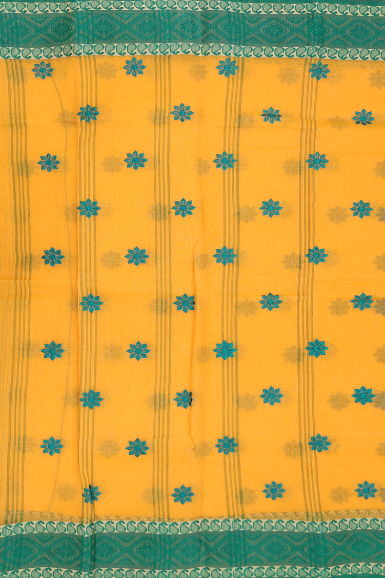 Bengal Cotton Saree In Mango Yellow With Floral Buttas