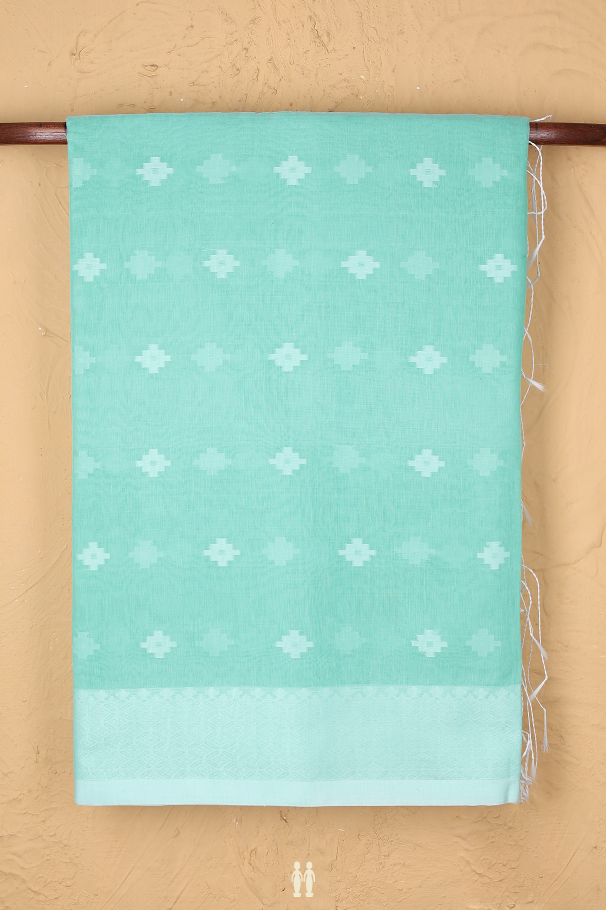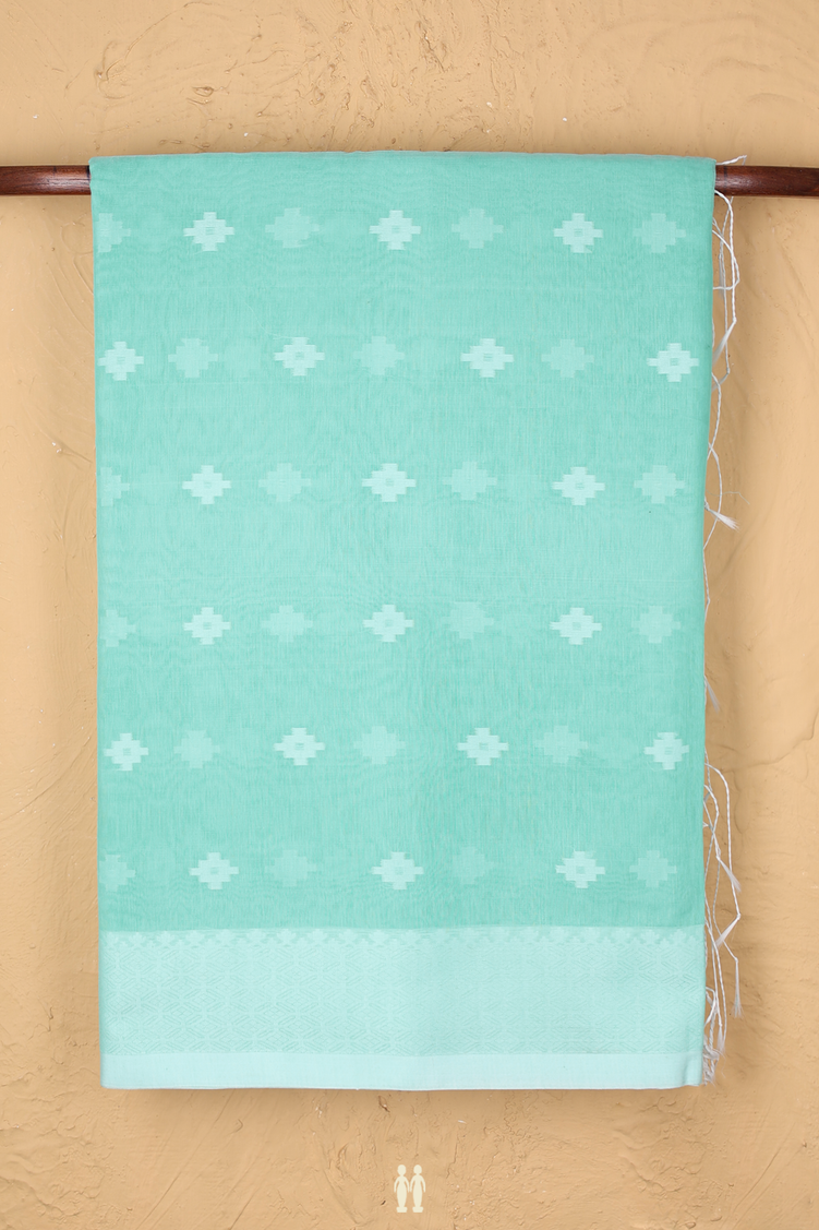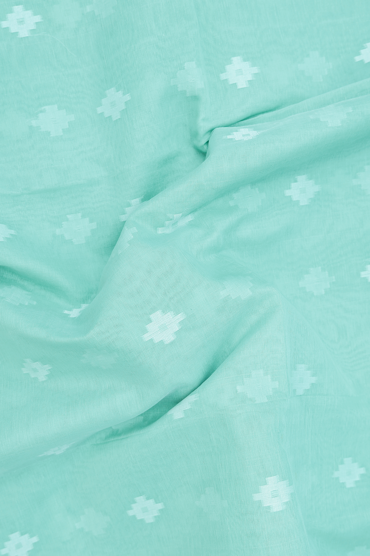Bengal Cotton Saree In Mint Green With Threadwork Buttas