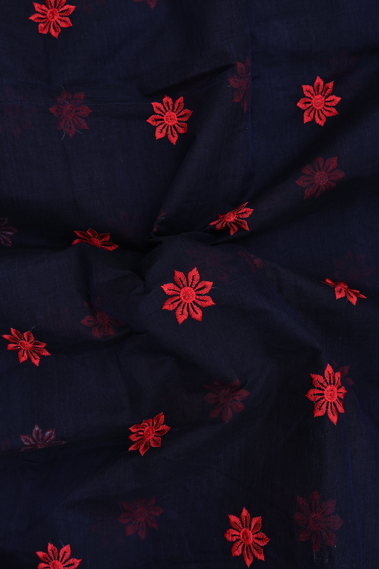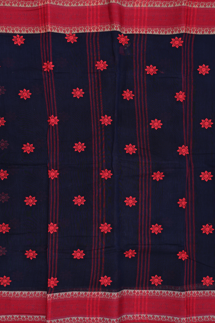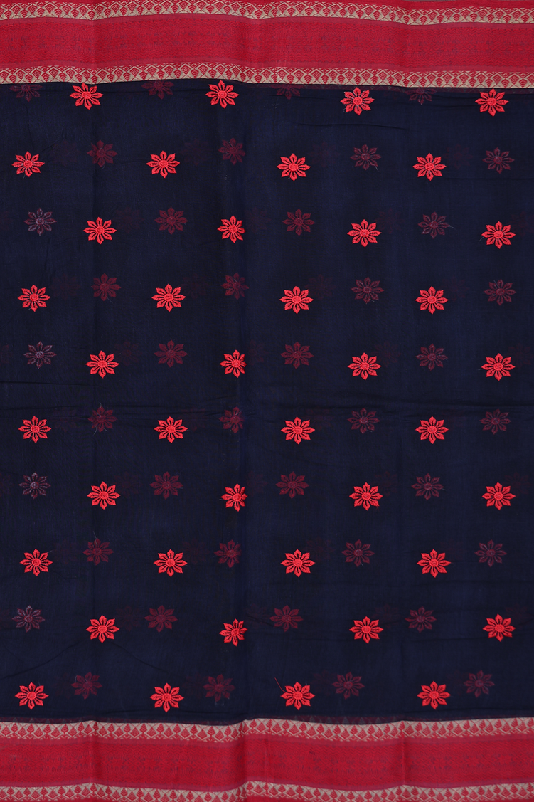 Bengal Cotton Saree In Navy Blue With Floral Buttas