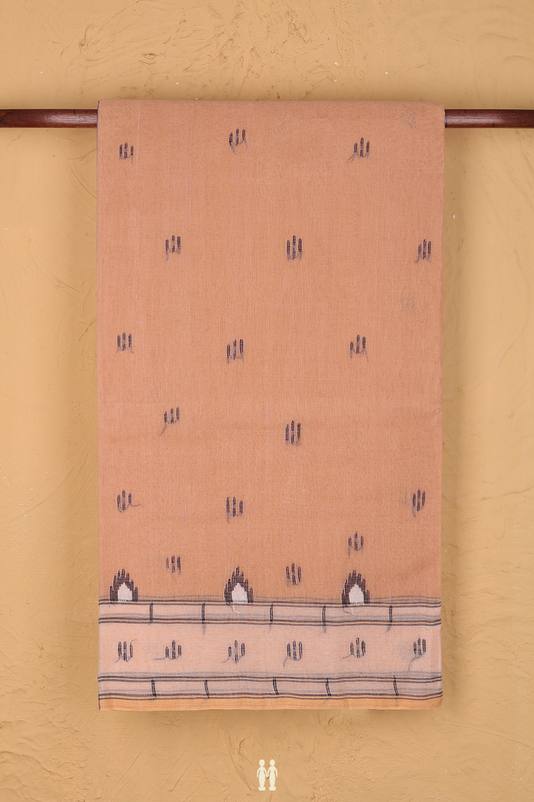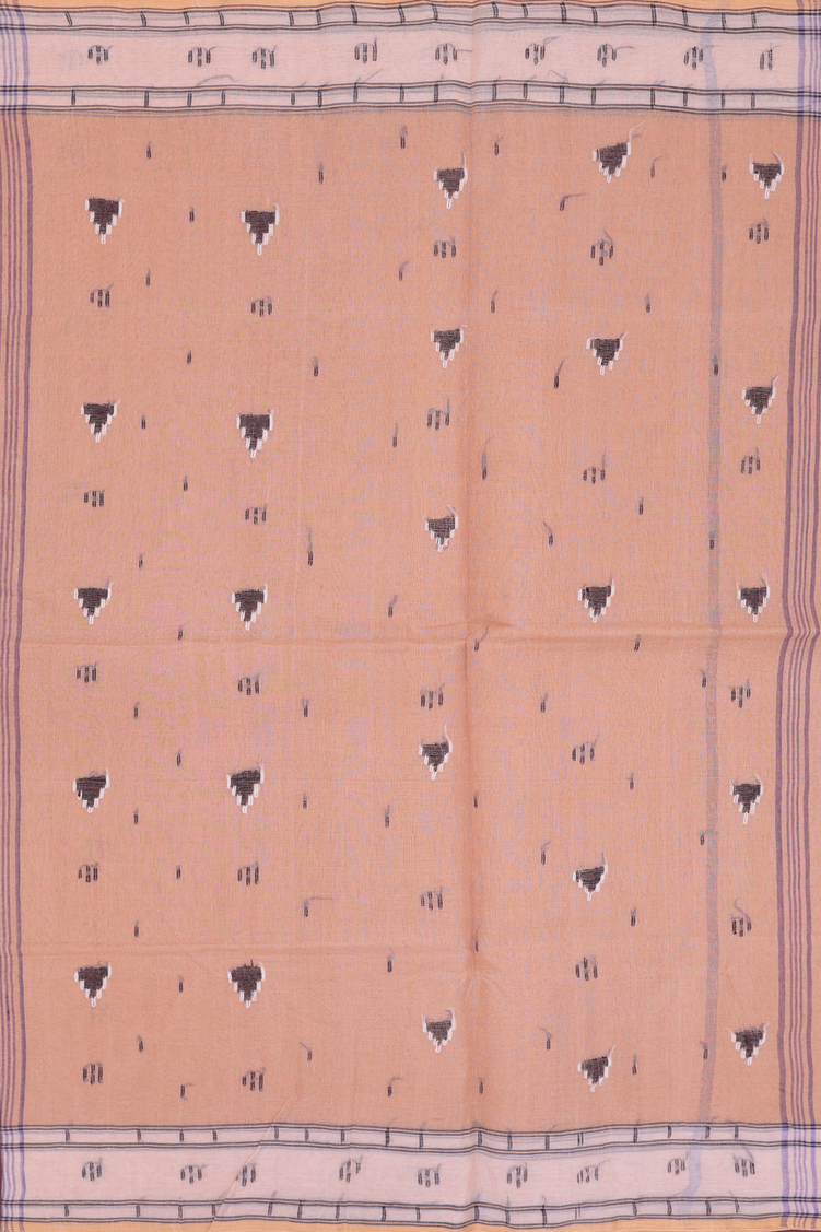 Bengal Cotton Saree In Orange With Threadwork Buttas
