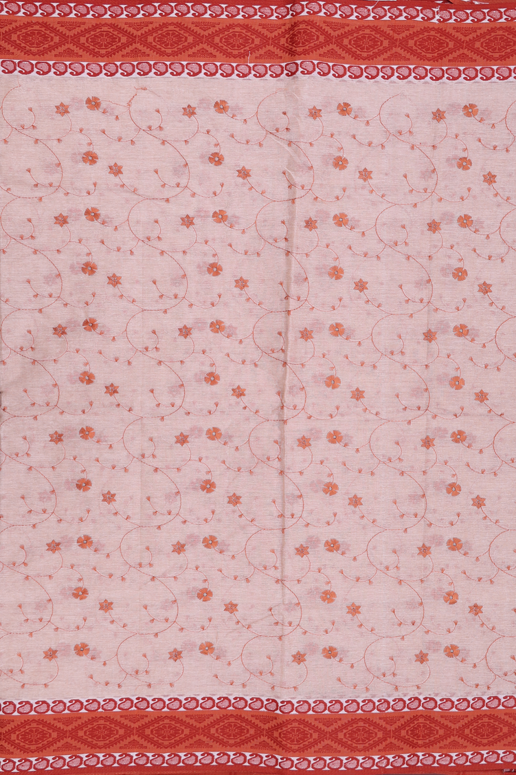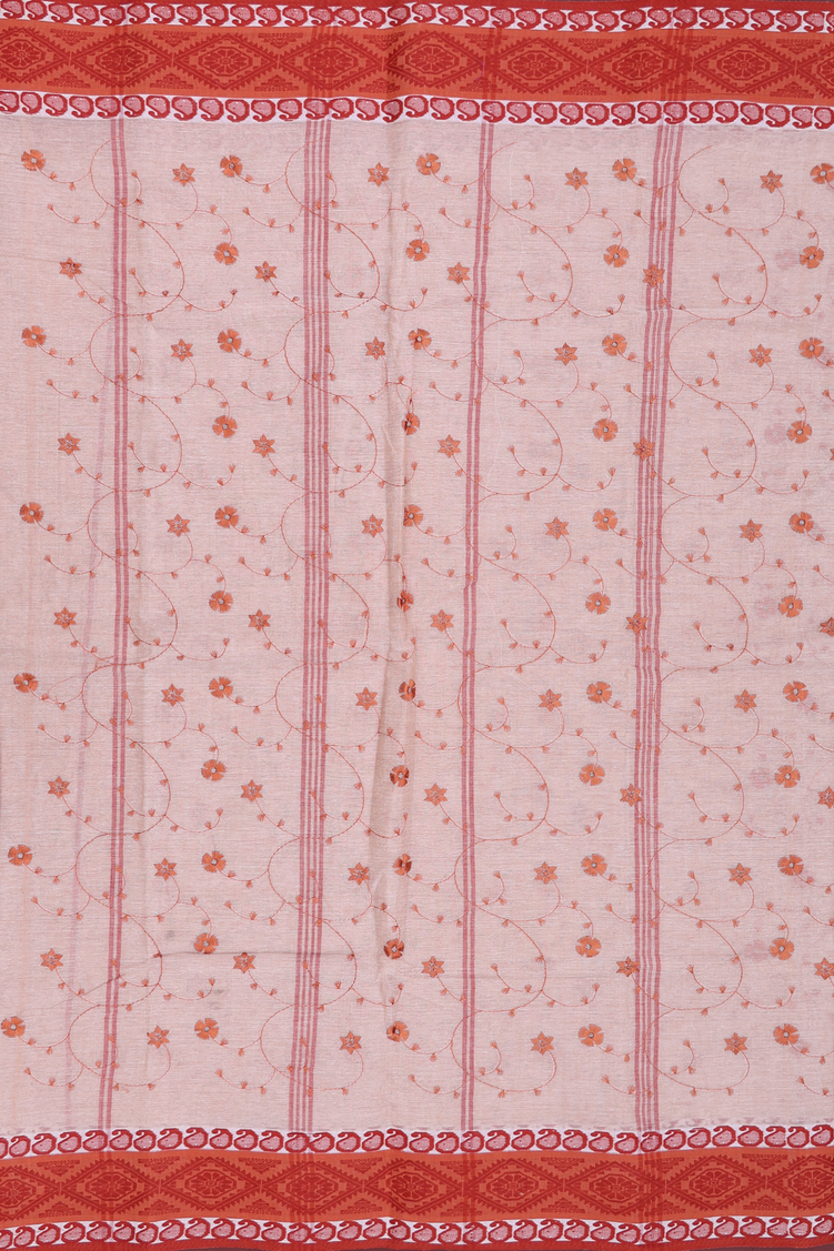 Bengal Cotton Saree In Pastel Brown With Floral Design