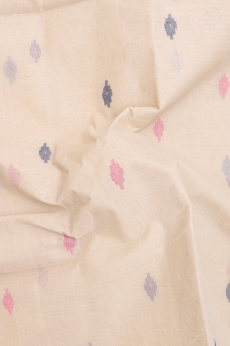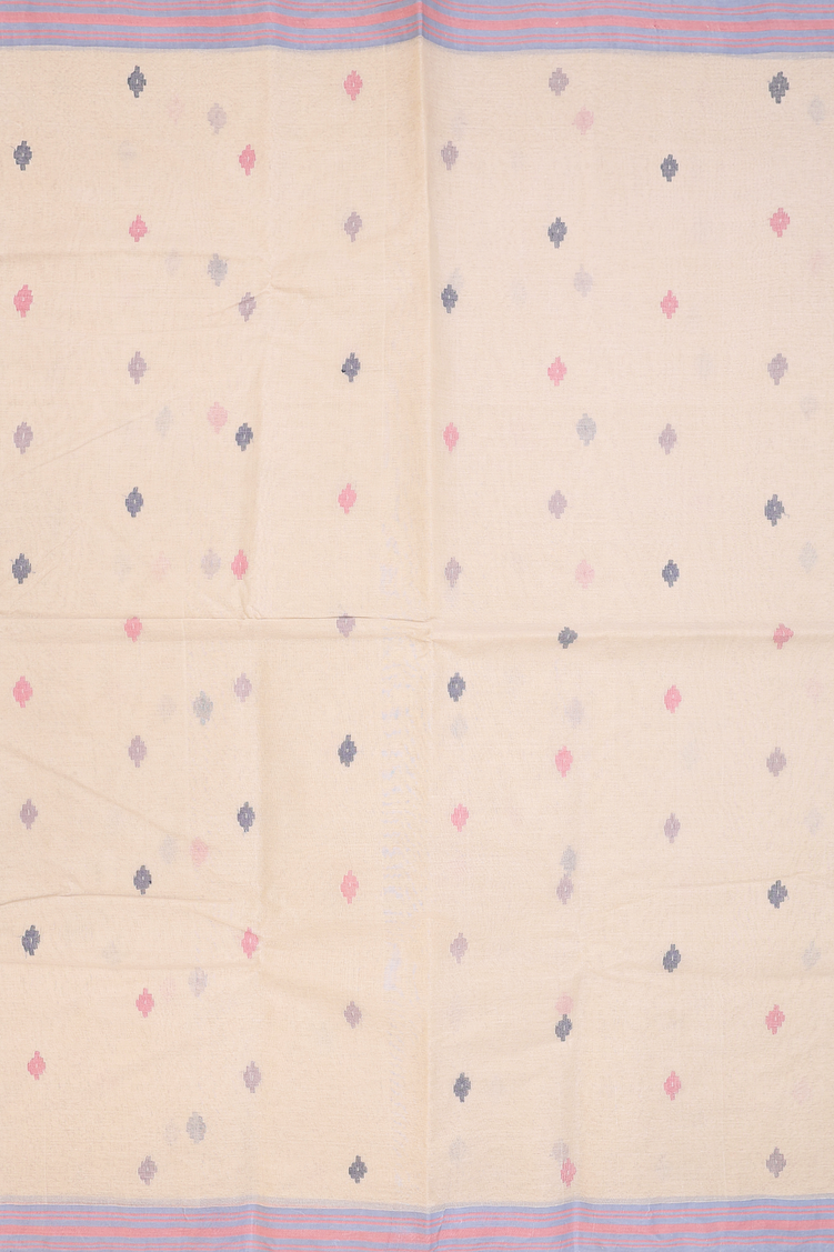 Bengal Cotton Saree In Pastel Brown With Threadwork Buttas