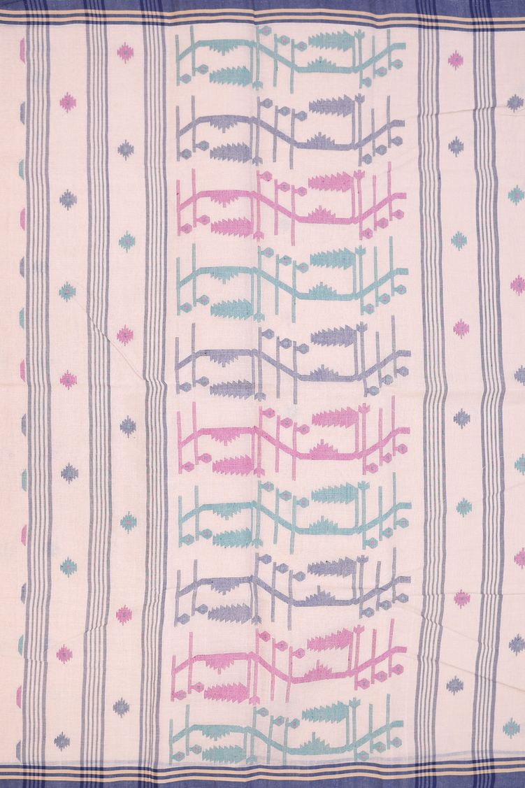 Experience timeless elegance with this bengal cotton saree in a subtle pastel brown shade. Adorned with delicate threadwork buttas, it blends traditional craftsmanship with a refined aesthetic. The breathable cotton fabric ensures comfort, making it perfect for both casual and festive occasions. This saree offers a graceful drape that complements your sophisticated style effortlessly.