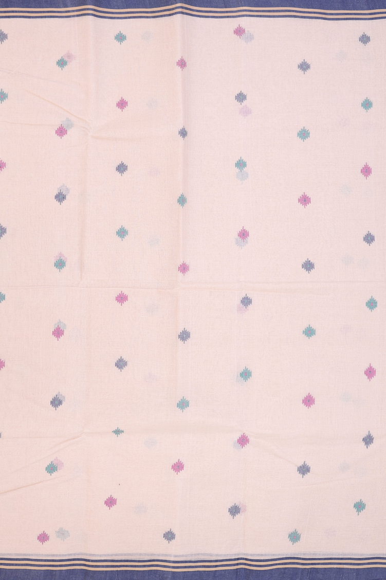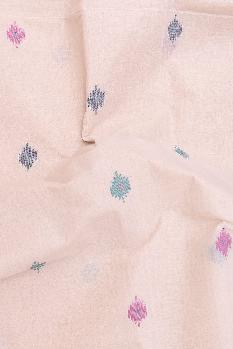 Bengal Cotton Saree In Pastel Brown With Threadwork Buttas