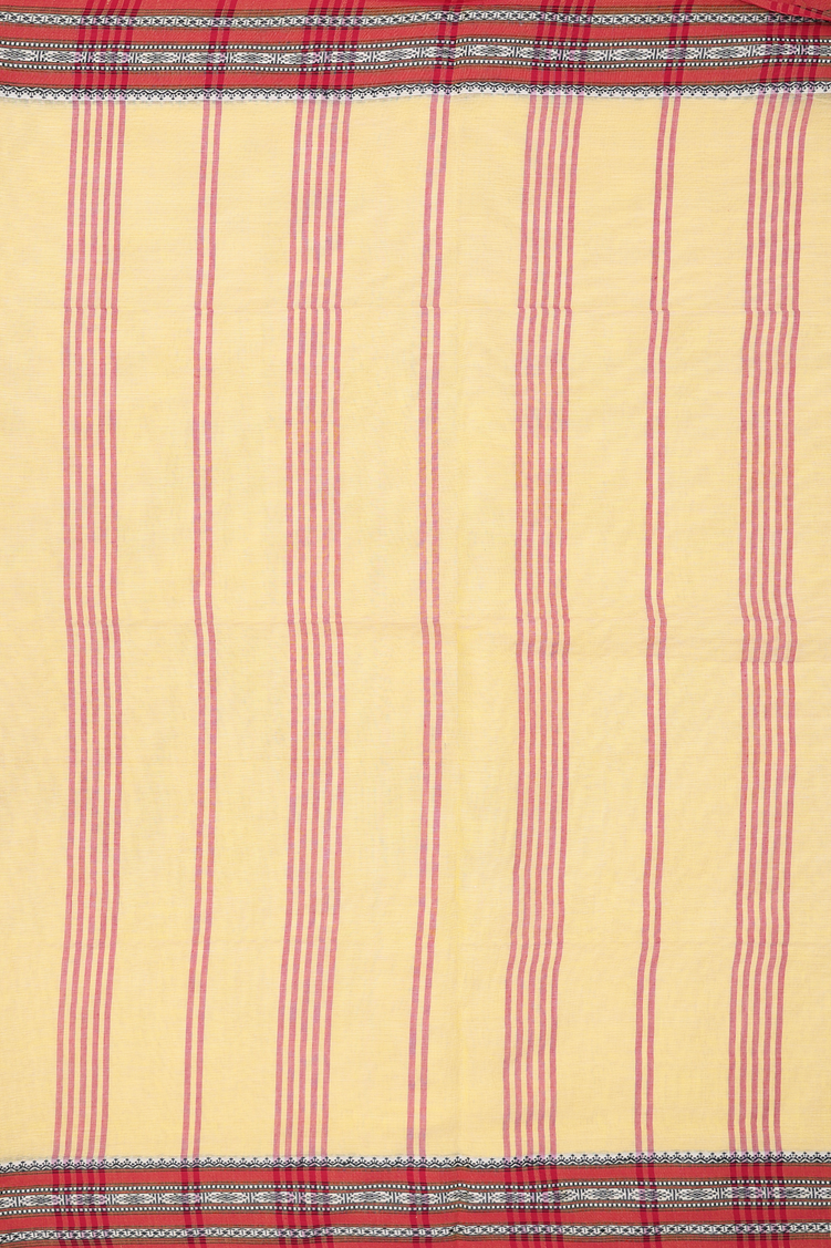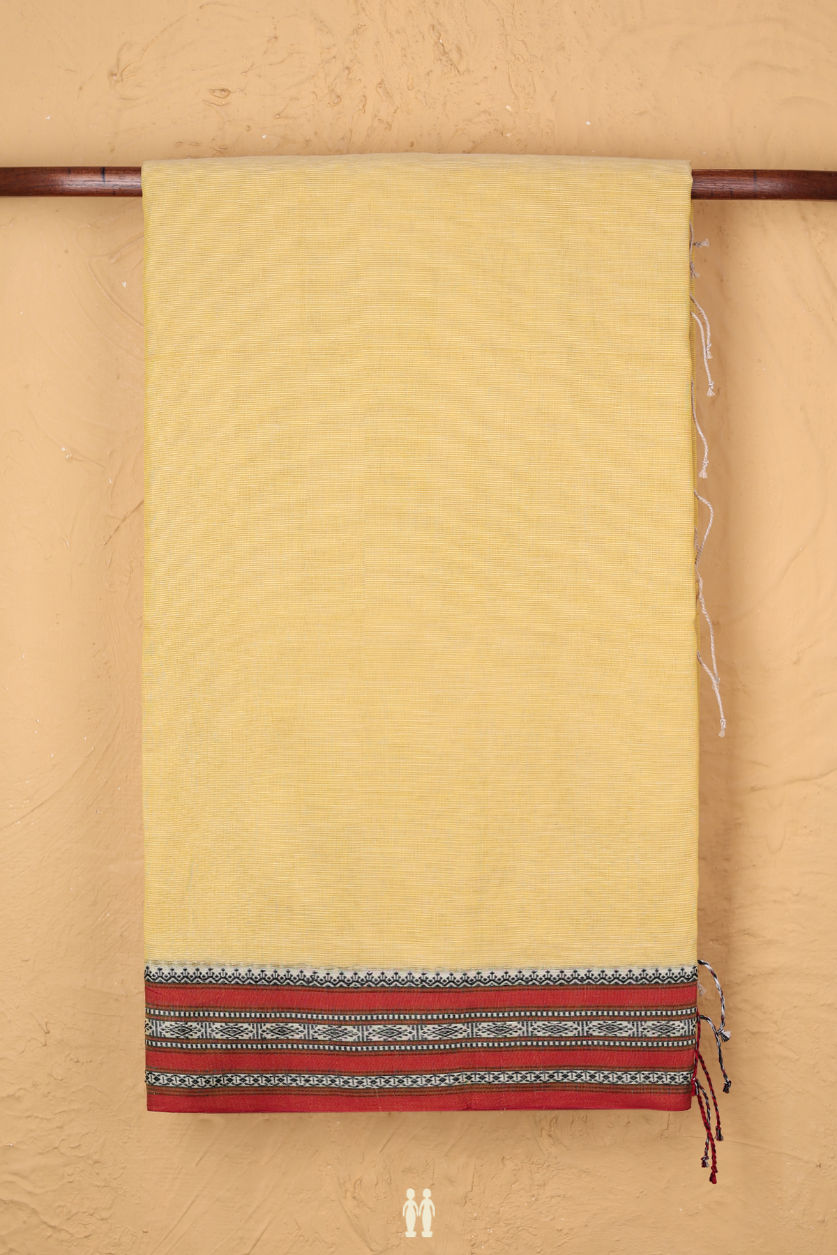 Bengal Cotton Saree In Pastel Yellow With Threadwork Border